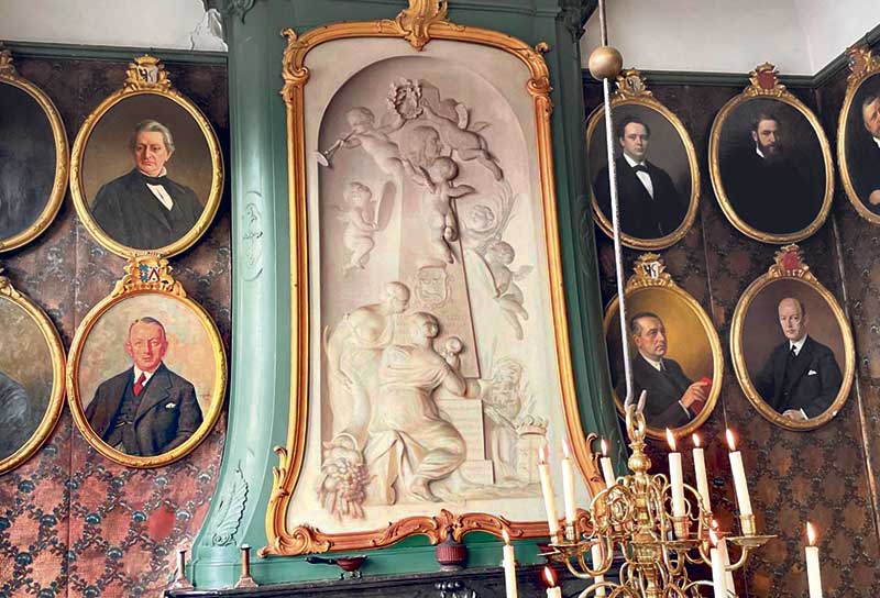 Twee dagen was beeldhouwer Tobias Snoep bezig met het verbeteren van de kleuren van de ruim vierhonderd jaar oude gevelsteen van hofje In den Groenen Tuin. Deze hangt niet boven de huidige ingang in de Warmoesstraat, maar boven de voormalige ingang in de Lange Veerstraat. Een plek voor fijnproevers, zullen we maar zeggen, je moet hem weten te vinden.